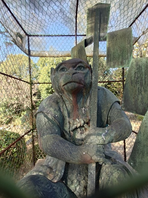 次に、新日吉神宮を参拝しました。平安時代に後白河上皇によって創建された神社で比叡山の日吉大社の神様を勧請したことからこの名前が付けられたそうです。境内には狛犬の代わりに「神猿(まさる)」と呼ばれる猿の像があり、魔が去る・勝るという意味から縁起の良いとされていて、皆さん携帯で写真を撮られていました。
